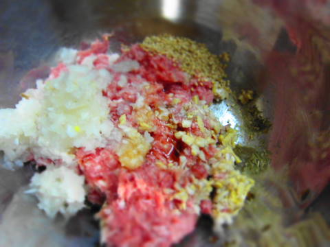腸詰したいけど、ないので(笑)つくねチックにまとめて焼きます。