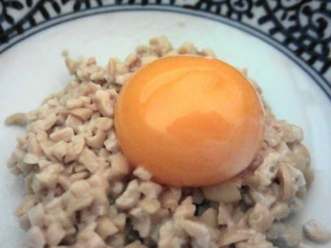 最近ハマって毎朝食べているのが納豆と黄身なんだけど、この卵の黄身はすごい盛り上がり!
